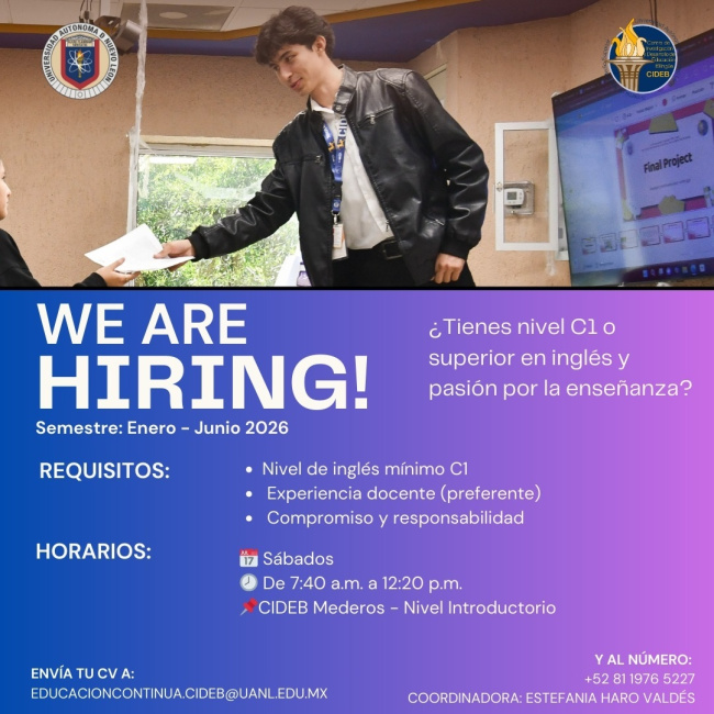 Vacante: Instructor de Inglés (Semestre Enero – Junio 2026) en CIDEB Mederos.